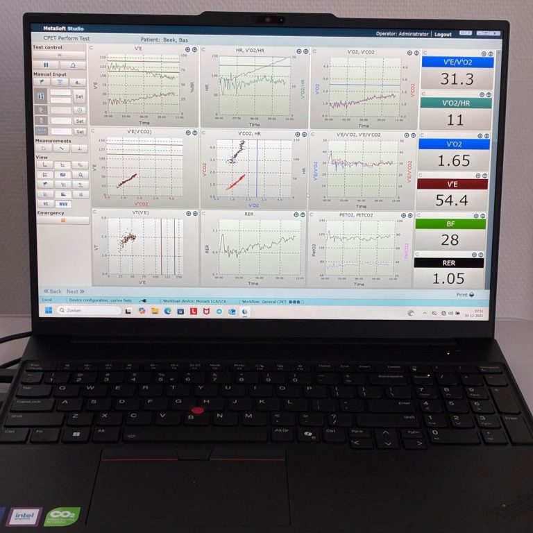 Een VO₂max-test geeft je duidelijk inzicht in je conditie en uithoudingsvermogen. Daarnaast worden je persoonlijke trainingszones (hartslag/wattage) nauwkeurig bepaald, zodat je precies weet hoe intensief je moet trainen om optimaal resultaat te behalen. Zo train je doelgericht, efficiënter en met minder risico op overbelasting, of je nu recreatief sport of prestatiegericht traint.